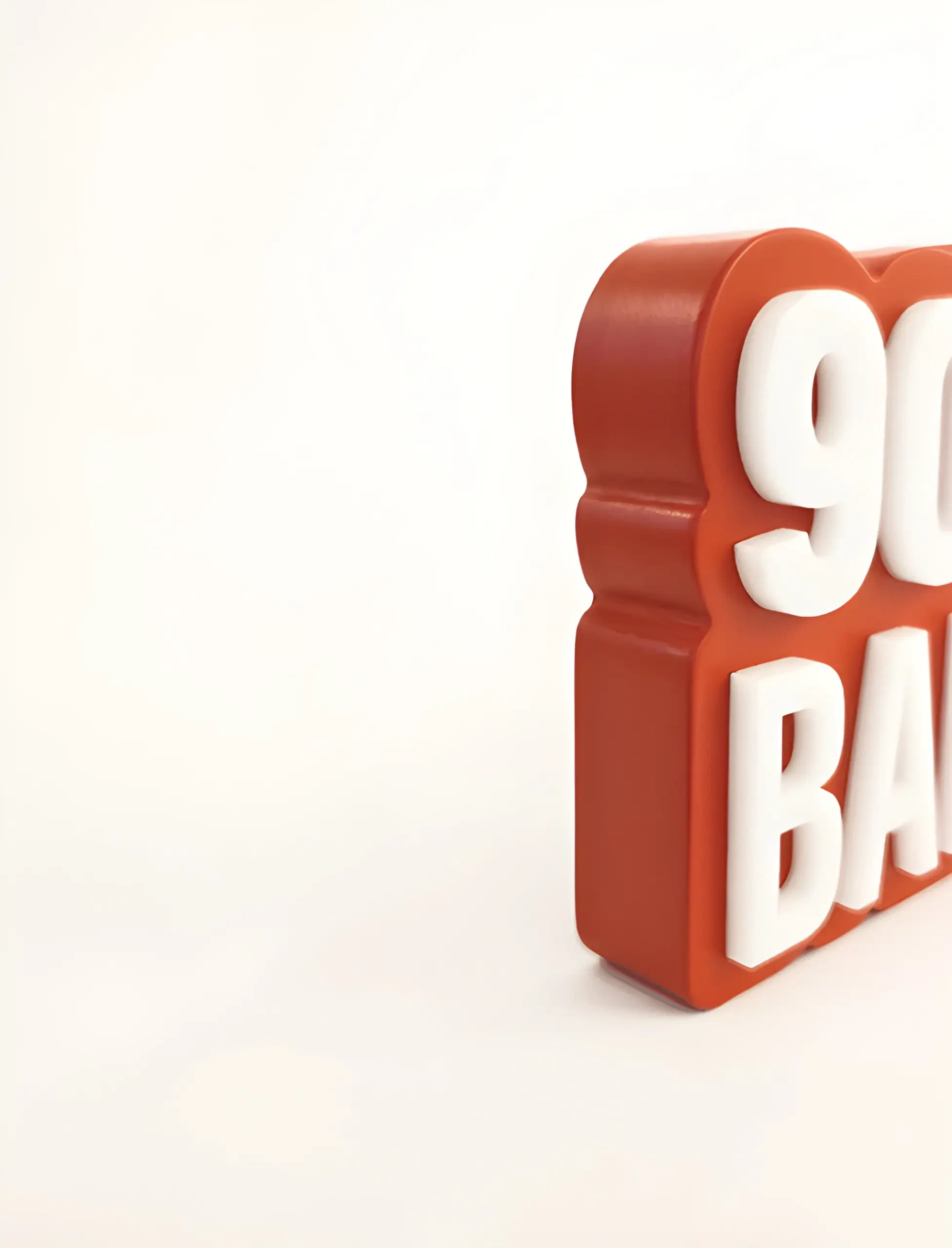 Smooth matte surface with precise, layered lettering in premium acrylic.