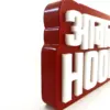Smooth matte surface with precise, layered lettering in premium acrylic.