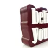 Smooth matte surface with precise, layered lettering in premium acrylic.