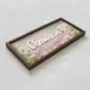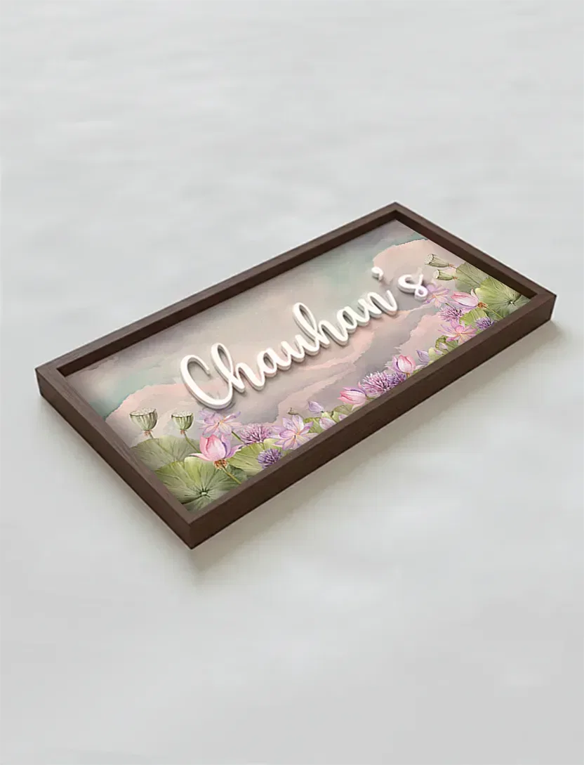 A dreamy fusion of nature and serenity, this nameplate brings together soft, delicate flowers set against an expansive sky. The gentle gradient of colors mirrors the hues of dawn, evoking a sense of calm and poetic beauty that welcomes you home.