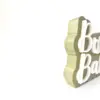Laser-cut acrylic letters are used for a clean, modern aesthetic with a tactile dimension