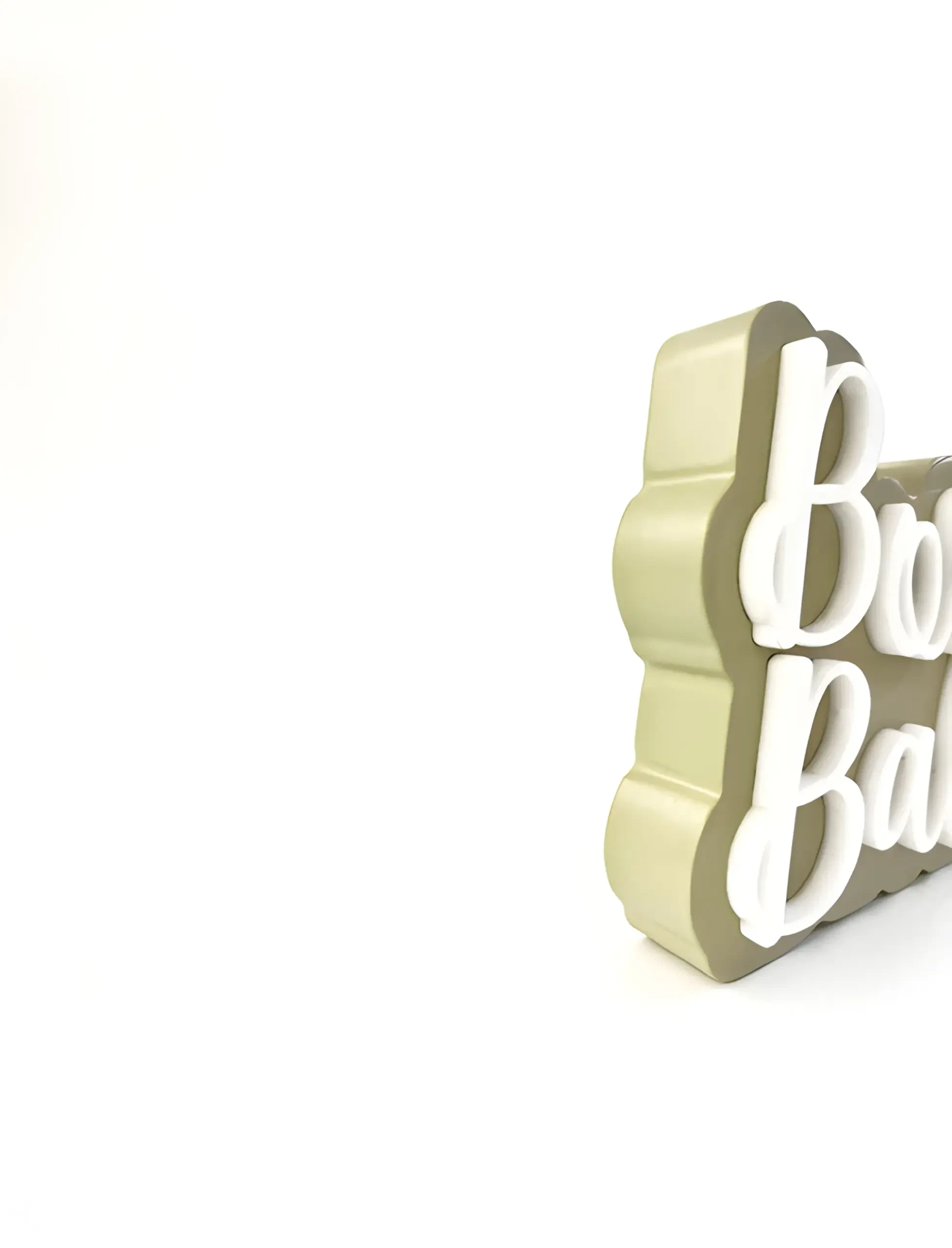 Smooth matte surface with precise, layered lettering in premium acrylic.