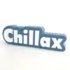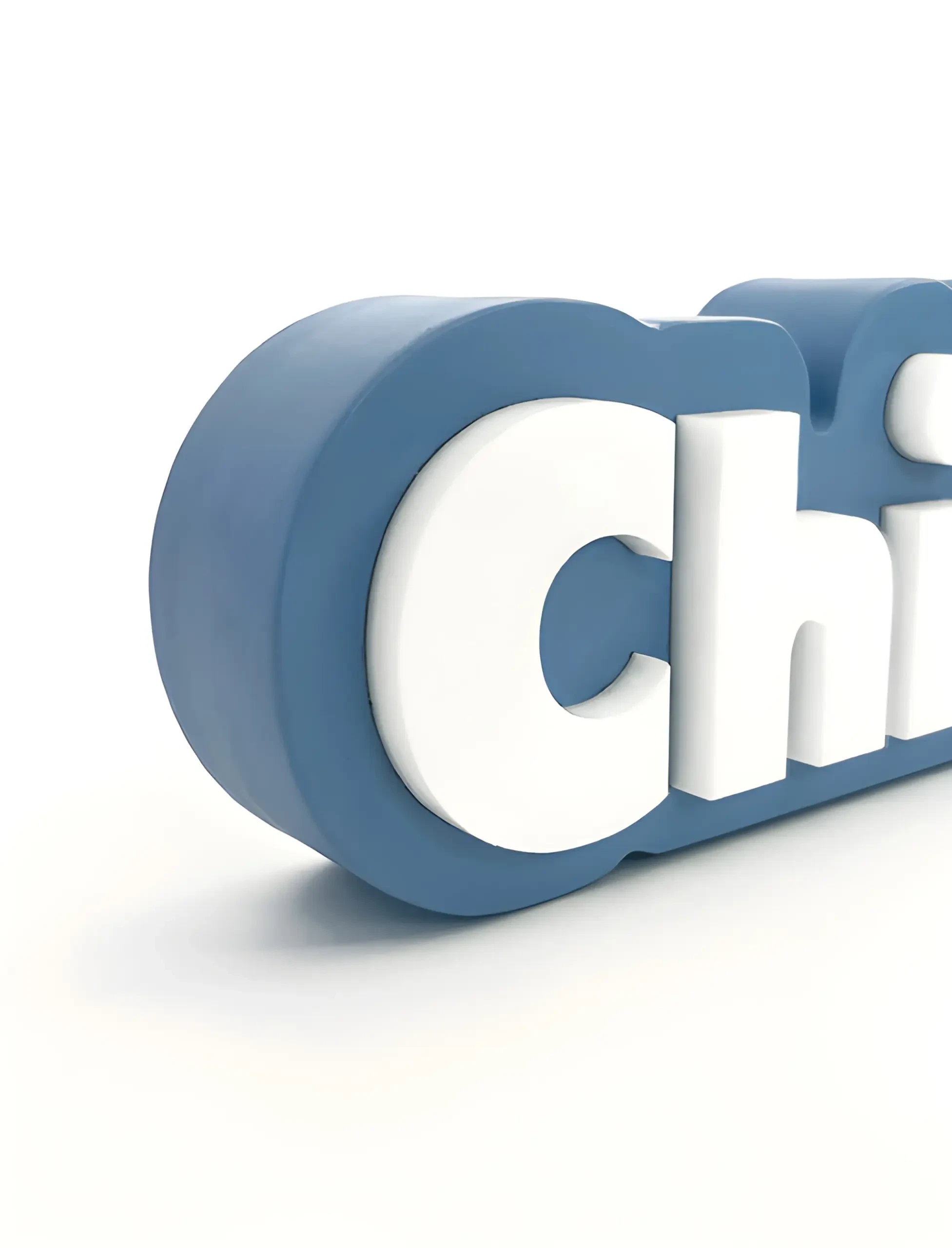 Laser-cut acrylic letters are used for a clean, modern aesthetic with a tactile dimension