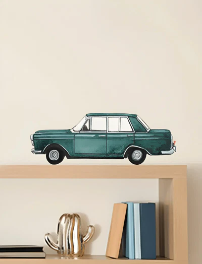With clean lines and a forest green finish, this vintage-style car decal offers a timeless, retro touch to playful spaces.