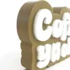 Laser-cut acrylic letters are used for a clean, modern aesthetic with a tactile dimension