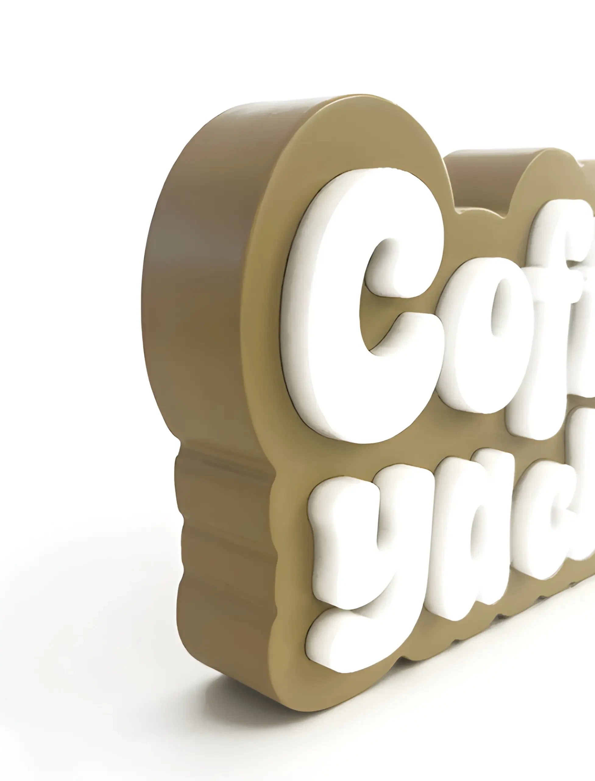 Smooth matte surface with precise, layered lettering in premium acrylic.