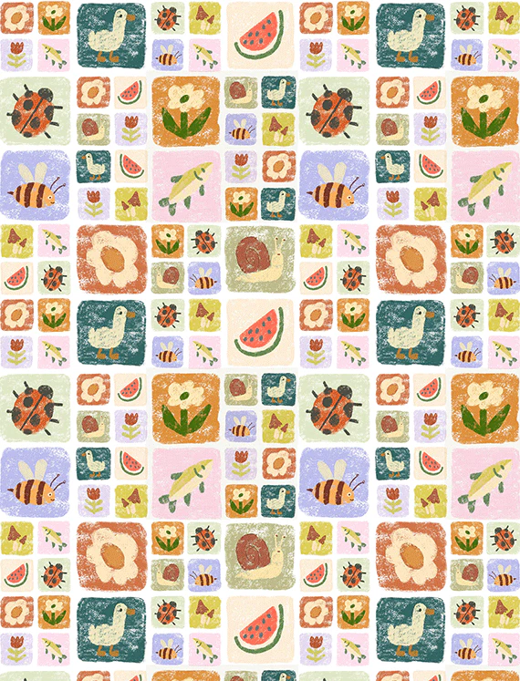 A playful design where cute elements pop to life inside bright, multicoloured boxes.