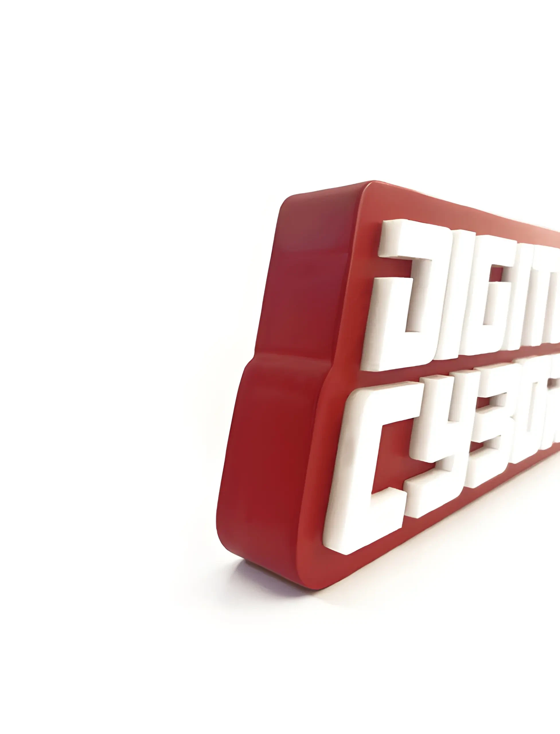 Smooth matte surface with precise, layered lettering in premium acrylic.