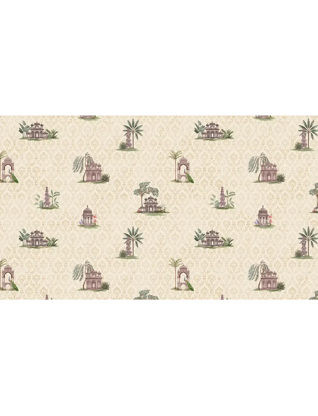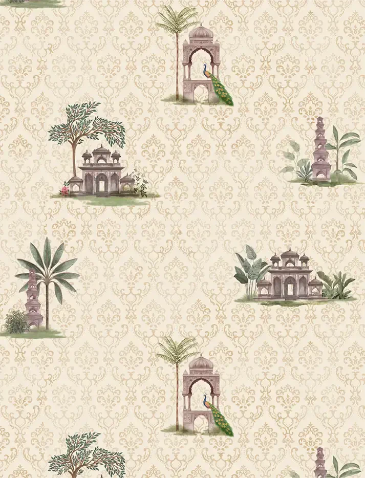 Ornate yet balanced, this architectural repeat rises against an intricate damask backdrop – a richly layered design that blends structure with opulence, adding depth and regal character to your walls.