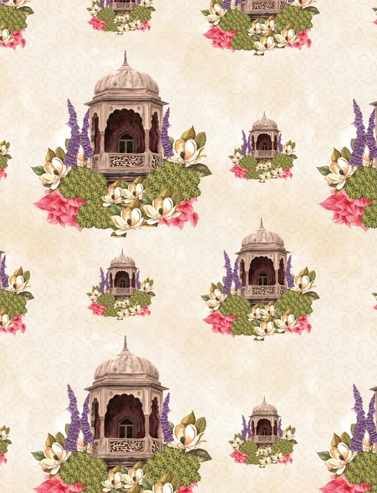 Elegant yet immersive, this repeating pattern intertwines florals with architectural detailing – a harmonious design that adds rhythm, depth, and a refined old-world character to your space.