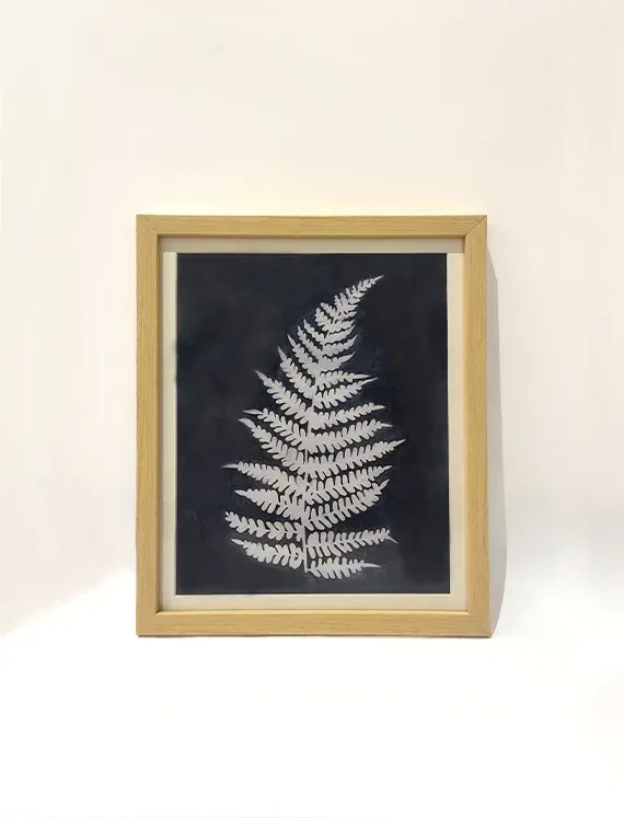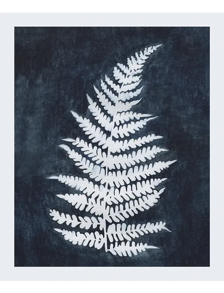 This fern motif, originally hand-rendered in cyanotype style, brings delicate detail and organic calm to your gallery wall.