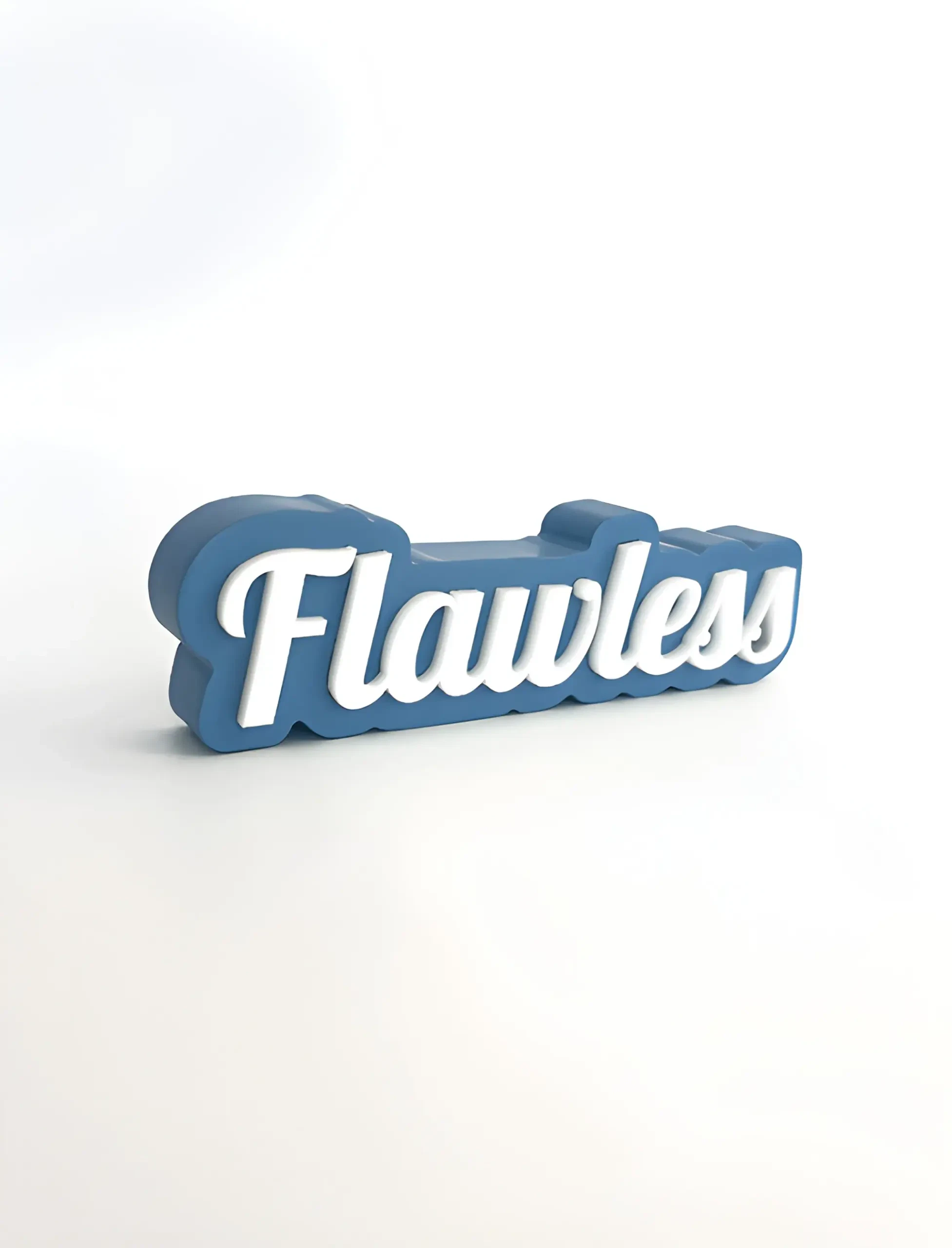 Smooth matte surface with precise, layered lettering in premium acrylic.