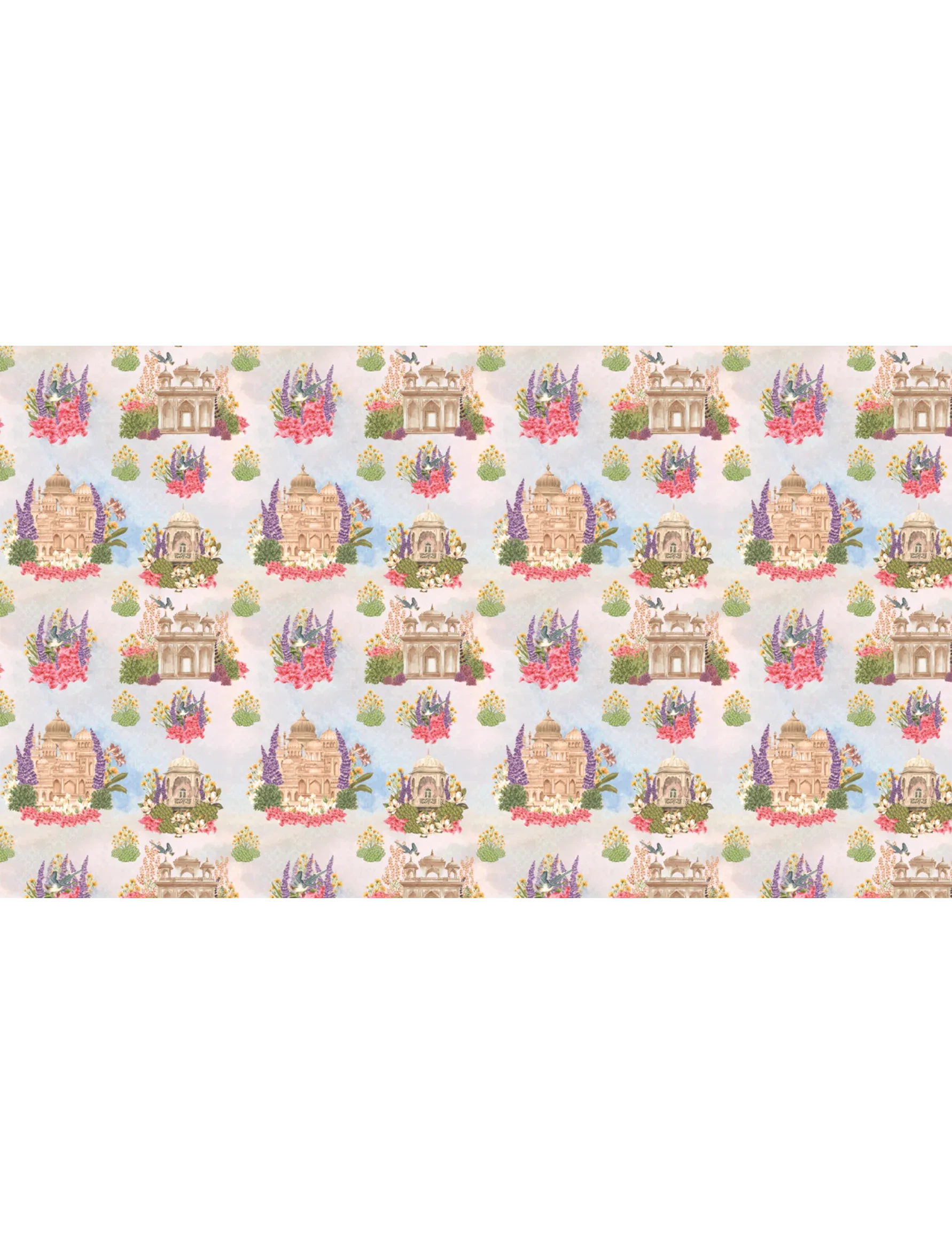 Grand yet intricate, this floral and architectural repeat blends blooming forms with structured silhouettes -a layered composition that brings timeless elegance and palace-like depth to your walls.