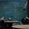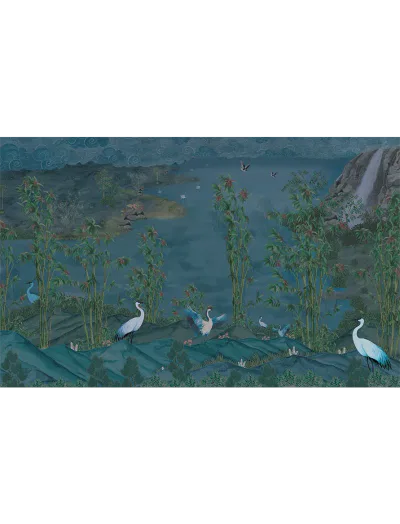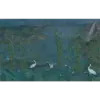 A scenic wallpaper where storks move through a calm, expansive landscape, composed with a gentle, natural flow.