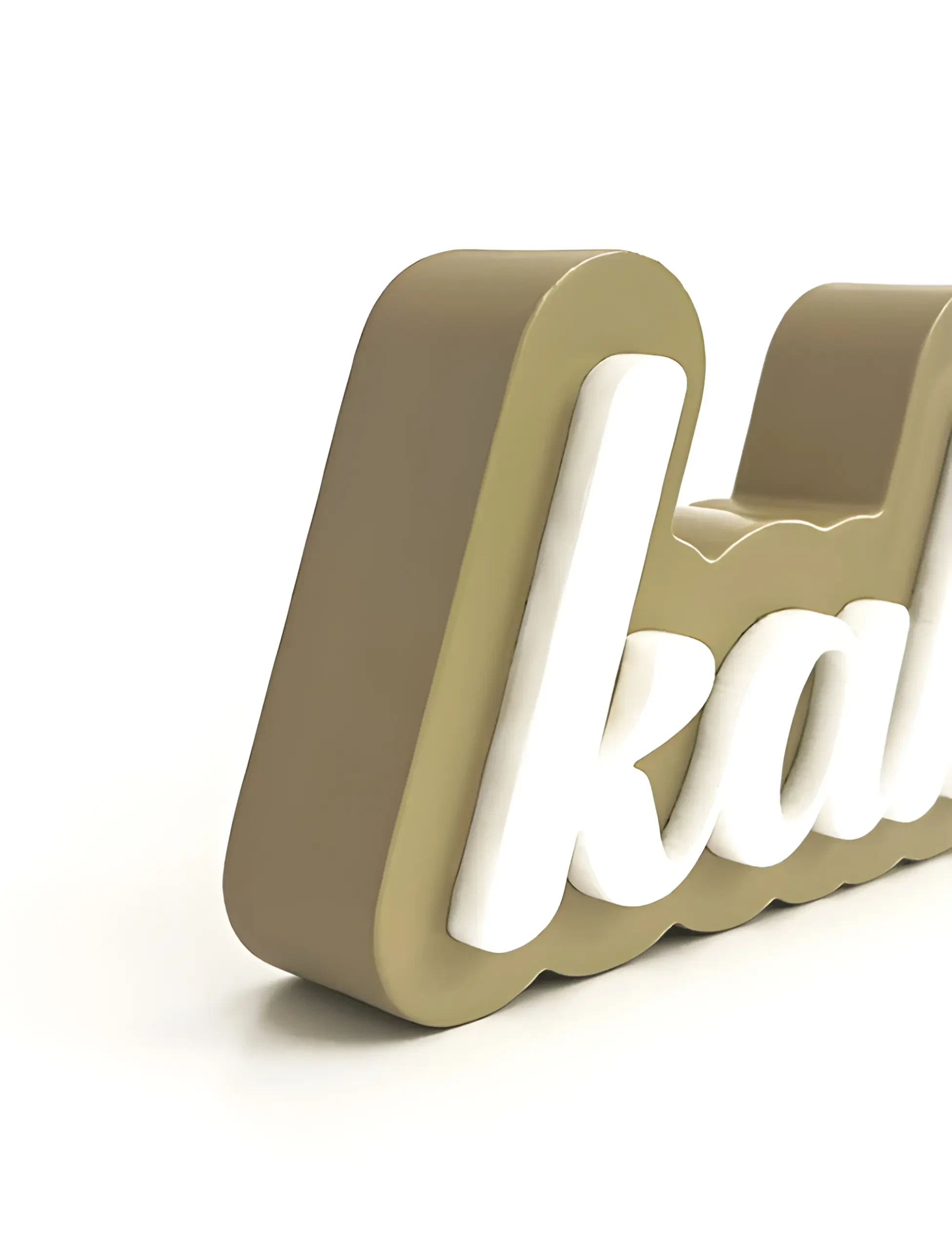Laser-cut acrylic letters are used for a clean, modern aesthetic with a tactile dimension