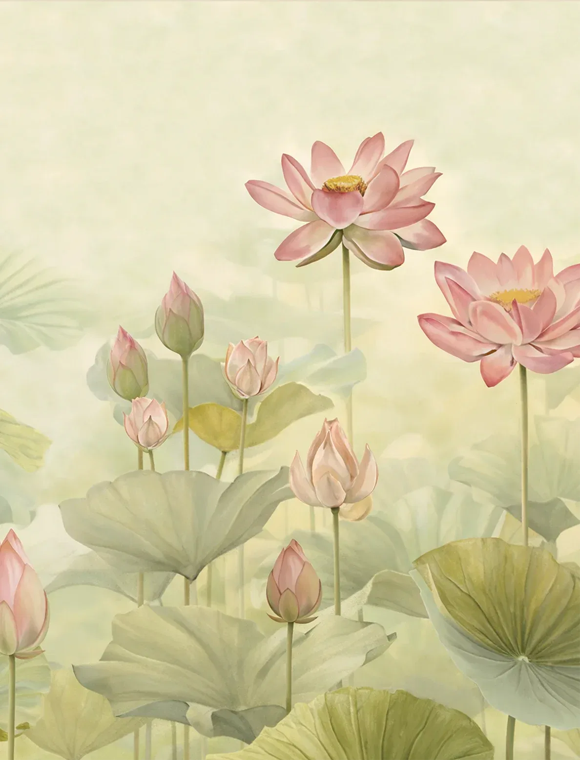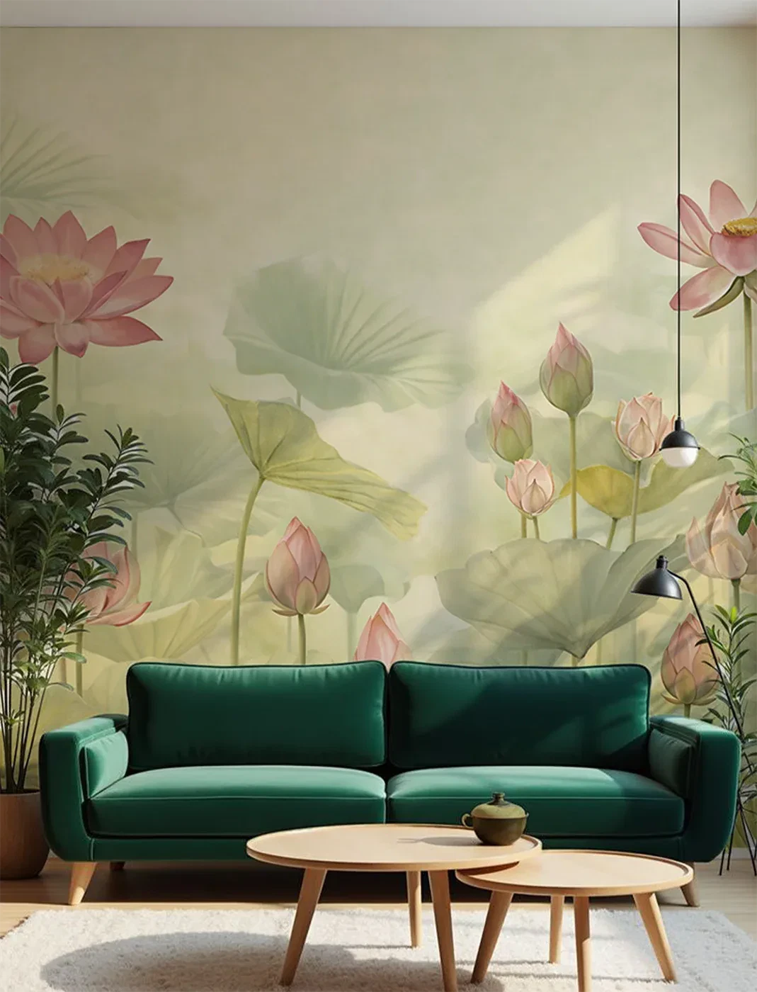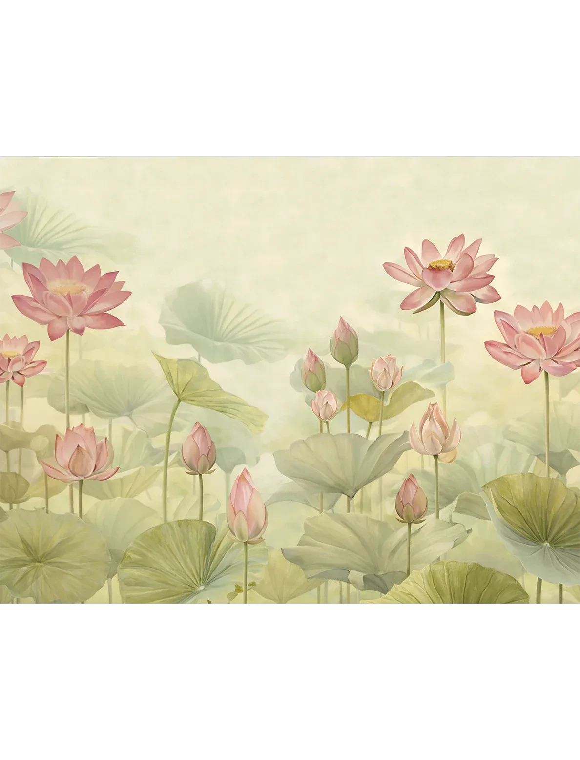 Calm yet captivating, this lotus-inspired design unfolds in graceful symmetry – a serene composition that brings balance, purity, and quiet elegance to your walls.