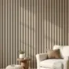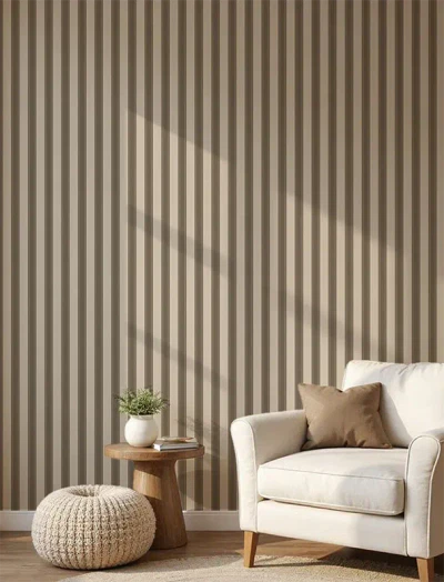 Classic yet commanding, this wallpaper brings warm contrast in clean, bold bands – a timeless design that adds depth and grounded elegance to any space.