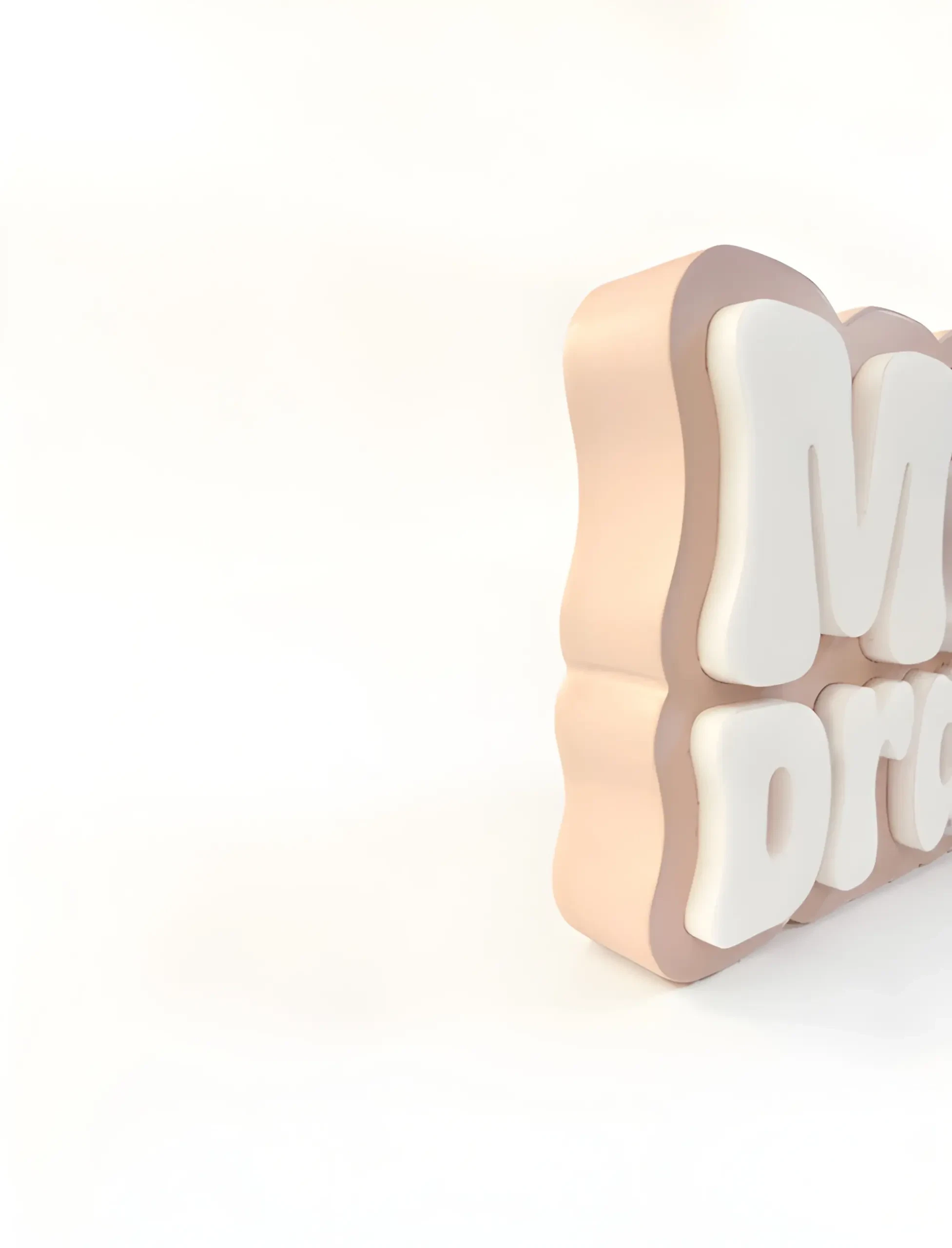 Smooth matte surface with precise, layered lettering in premium acrylic.