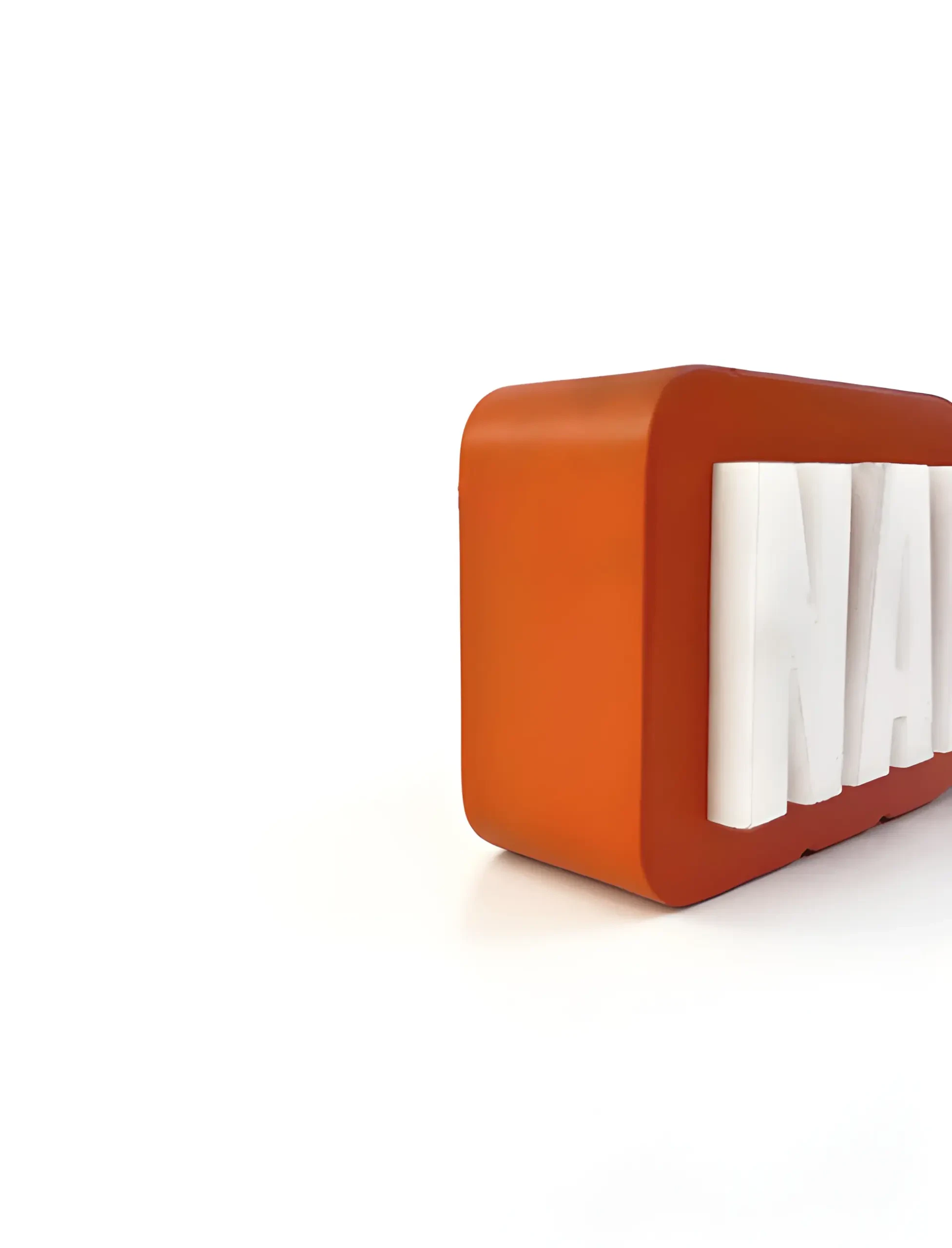 Smooth matte surface with precise, layered lettering in premium acrylic.