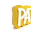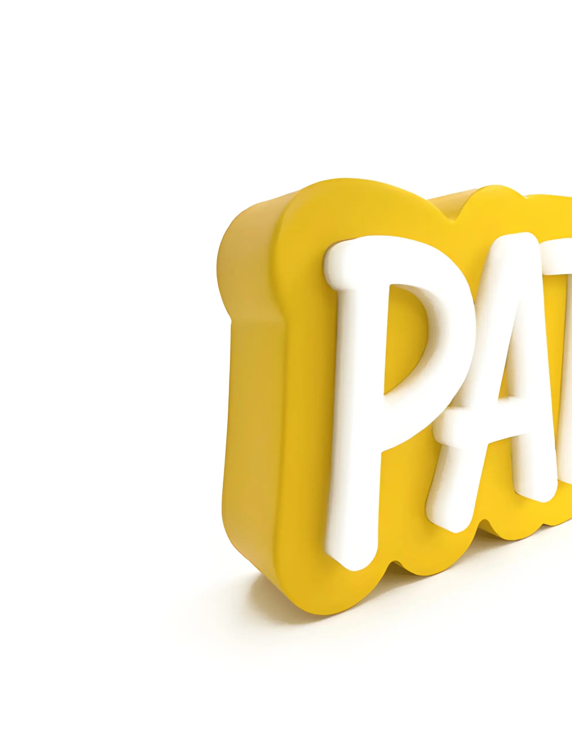 Laser-cut acrylic letters are used for a clean, modern aesthetic with a tactile dimension
