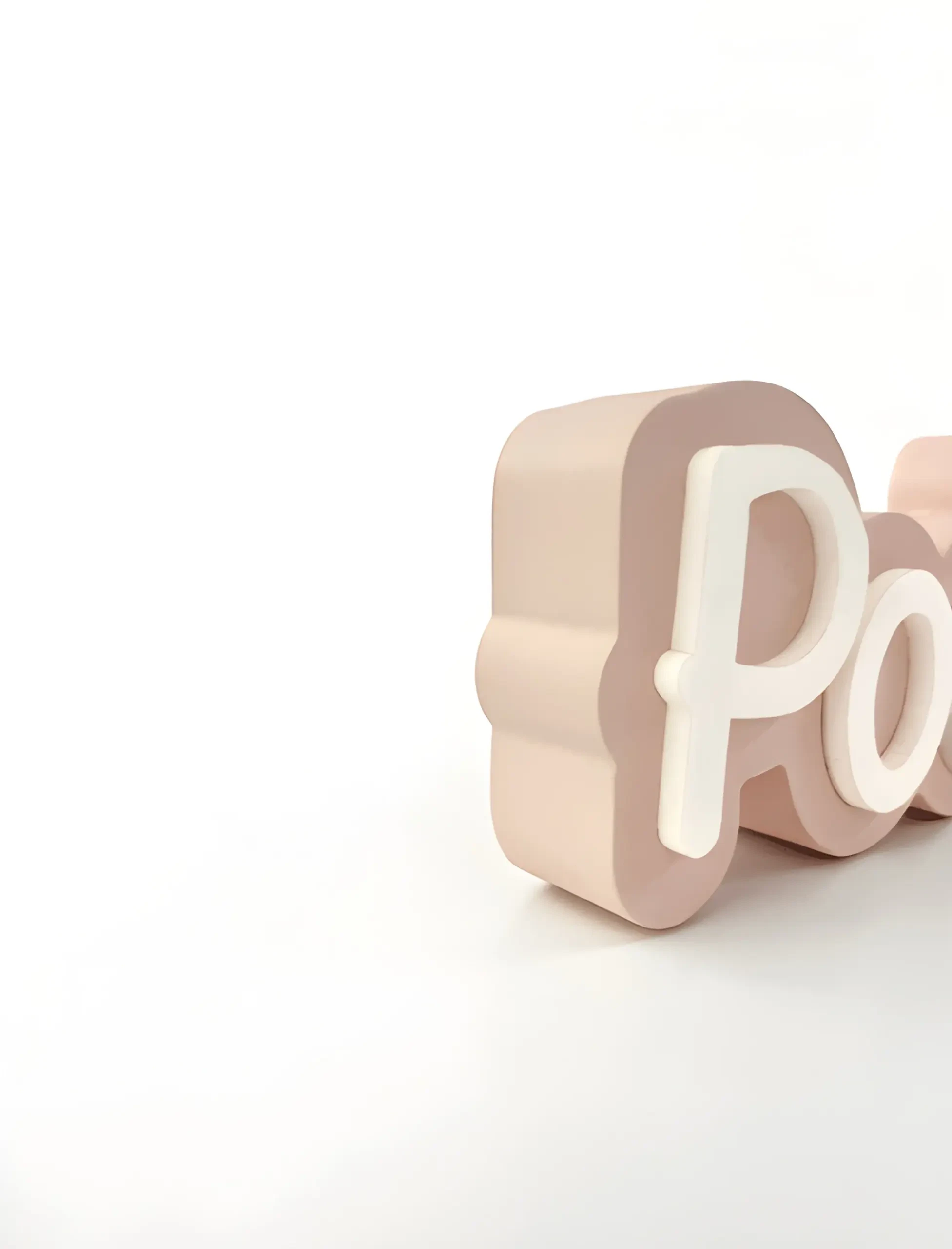 Laser-cut acrylic letters are used for a clean, modern aesthetic with a tactile dimension