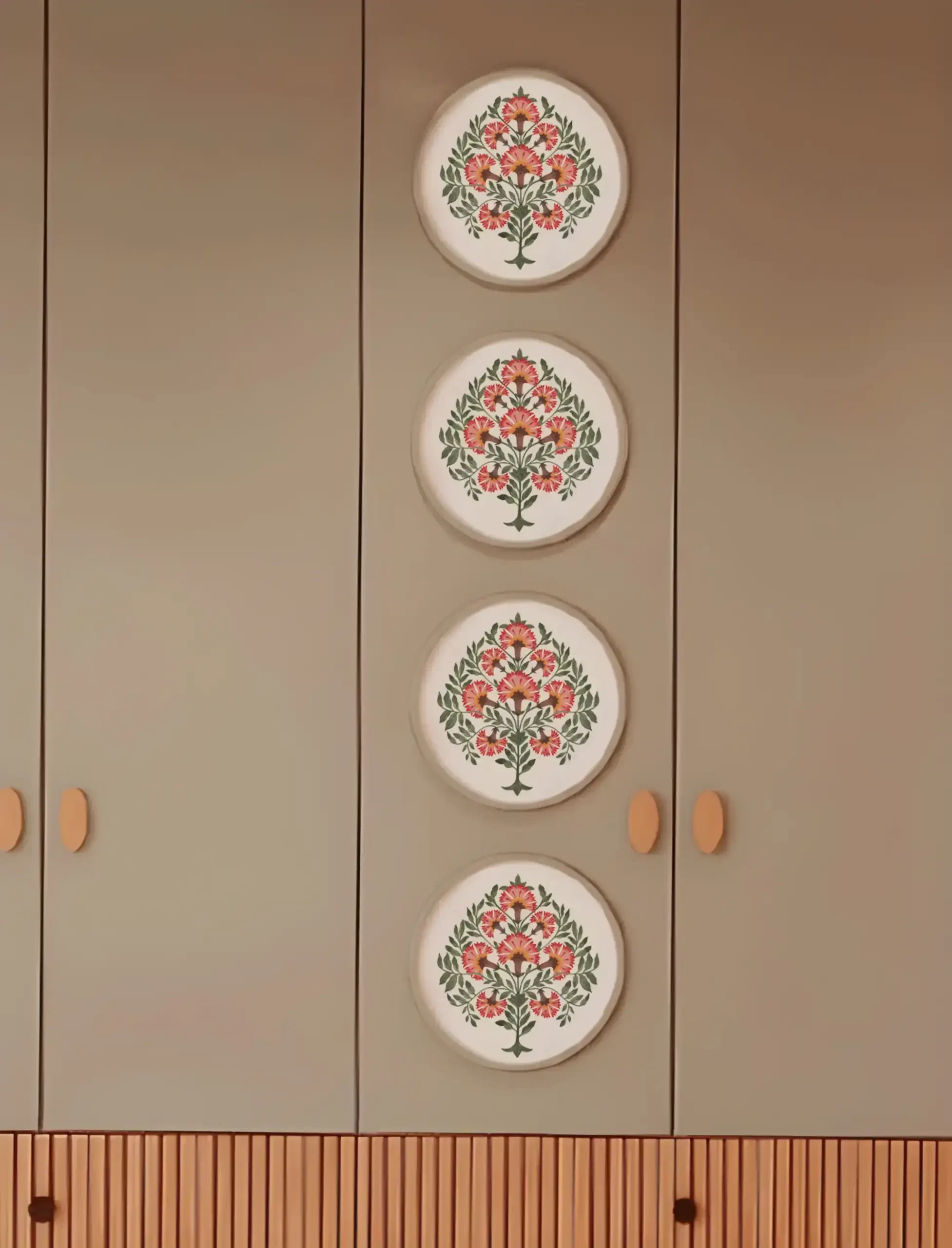 Inspired by miniature painting traditions, this lush floral cluster in red tones adds symmetry, richness, and timeless elegance to your walls.