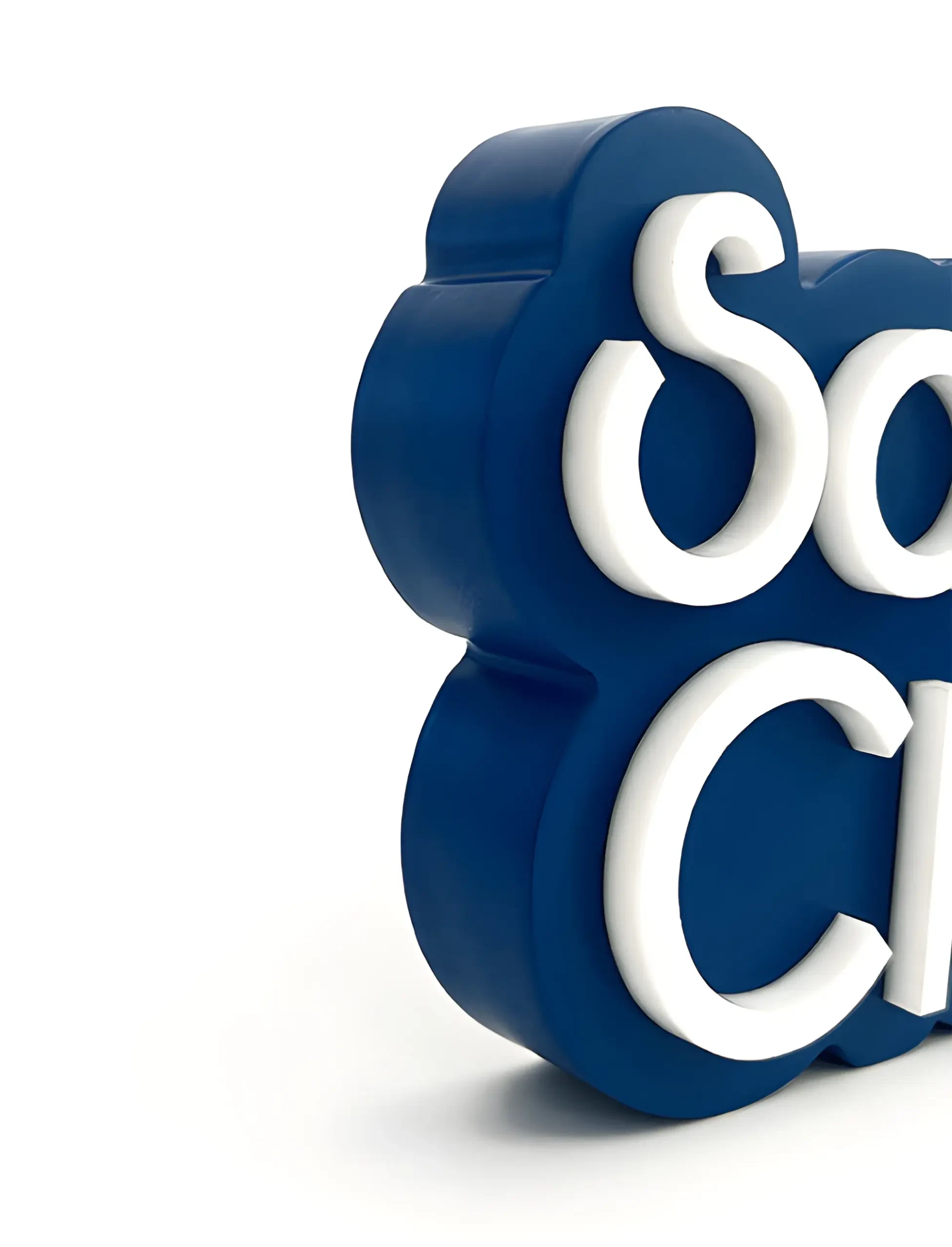 Smooth matte surface with precise, layered lettering in premium acrylic.