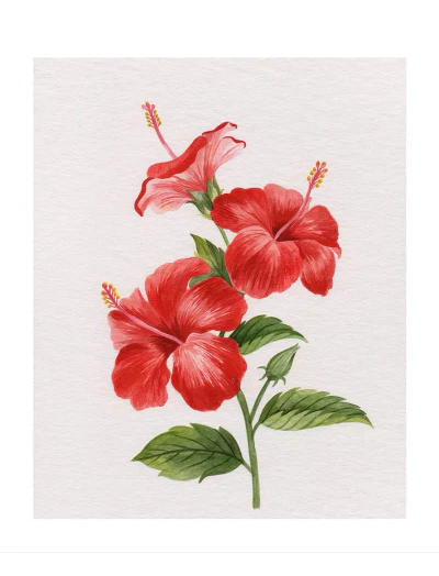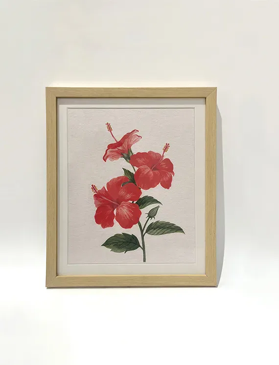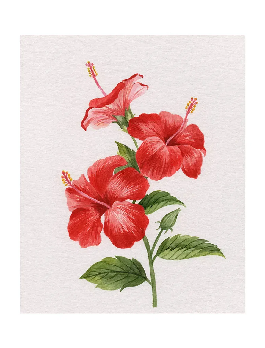 This bold hibiscus composition in fiery reds adds tropical vibrance to your space — a true-to-brushstroke digital reproduction of the original artwork.