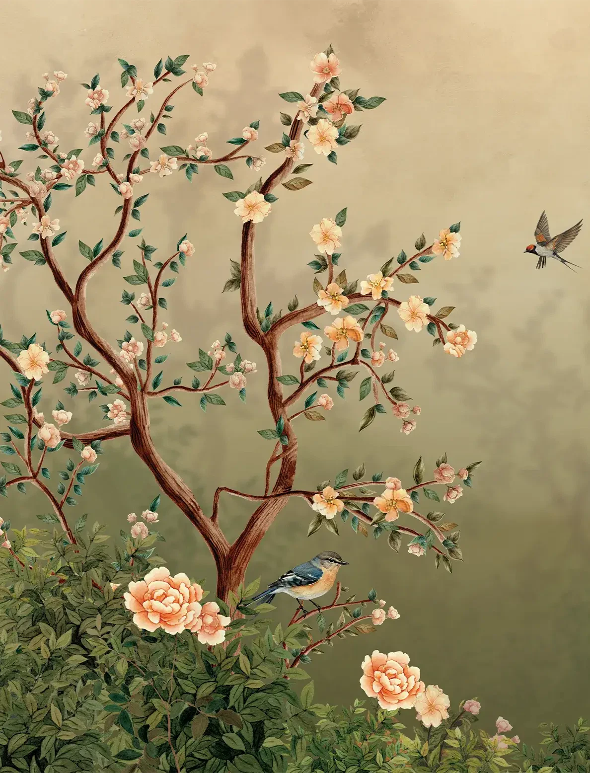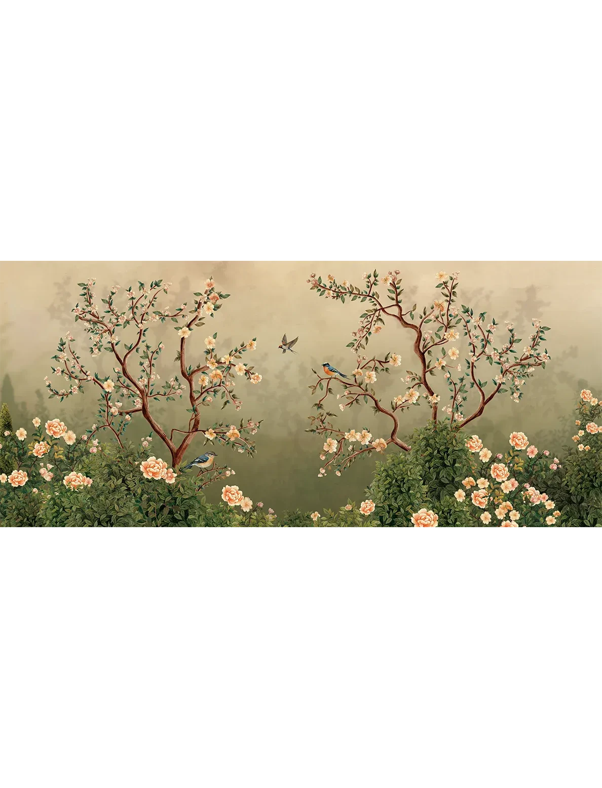 Dark and enchanting, this shadowed backdrop frames two intricately detailed trees in quiet grandeur – a dramatic composition that brings depth, mystery, and timeless elegance to your walls.