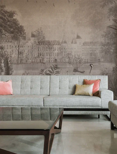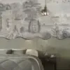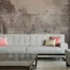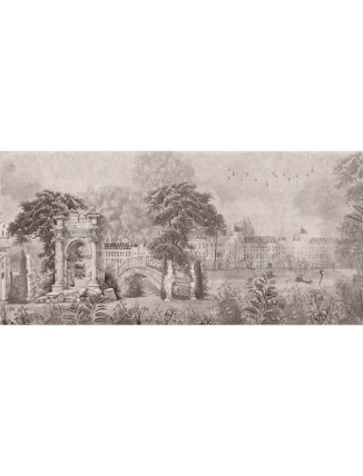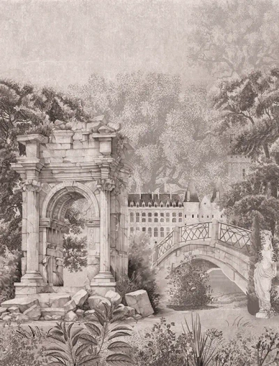 This monochromatic wallpaper captures the quiet grandeur of an ancient Roman-style garden, inviting conversation, reflection, and a sense of historical depth into any space.