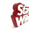 Laser-cut acrylic letters are used for a clean, modern aesthetic with a tactile dimension