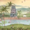 A tranquil mural where temples meet water, brought to life with gentle movement and soaring birds.