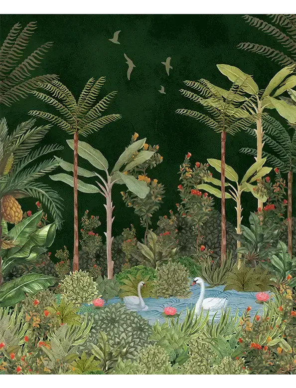 A bustling, chirpy tropical tableau, alive with rhythm and quiet movement.