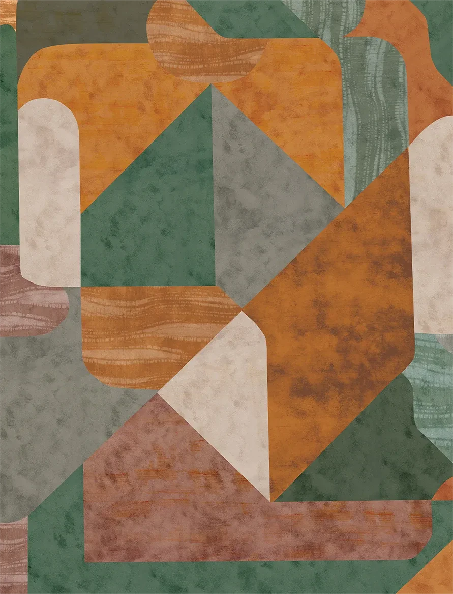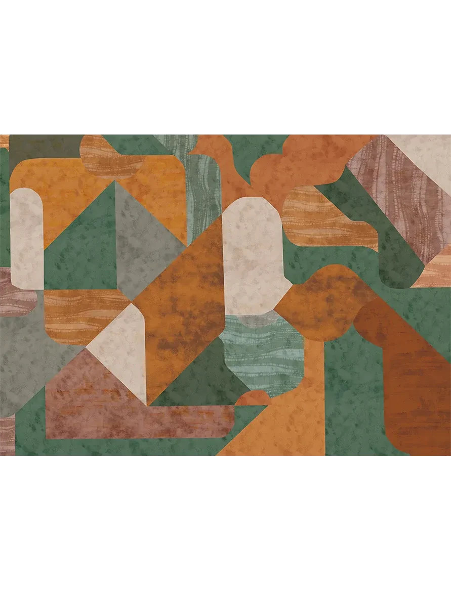 A vibrant montage of deep, layered hues brought together with varied textures creates a bold, expressive statement. Rich in depth and character, this design adds drama, artistry, and a striking contemporary vibe to your walls.
