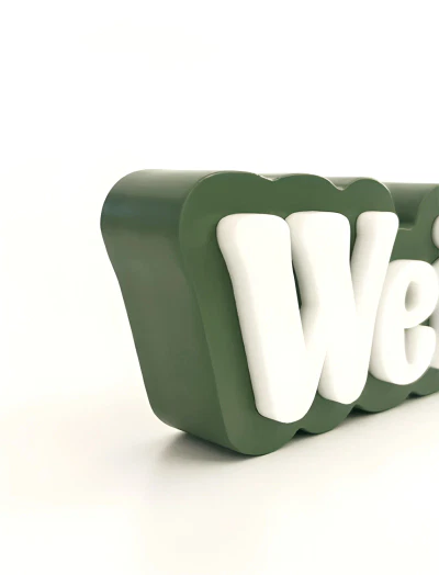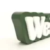 Laser-cut acrylic letters are used for a clean, modern aesthetic with a tactile dimension