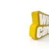 Laser-cut acrylic letters are used for a clean, modern aesthetic with a tactile dimension