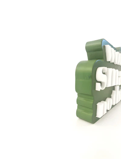 Smooth matte surface with precise, layered lettering in premium acrylic.