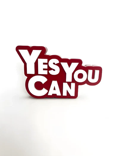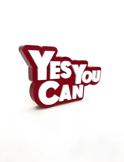 Smooth matte surface with precise, layered lettering in premium acrylic.