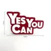 Laser-cut acrylic letters are used for a clean, modern aesthetic with a tactile dimension