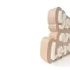 Laser-cut acrylic letters are used for a clean, modern aesthetic with a tactile dimension