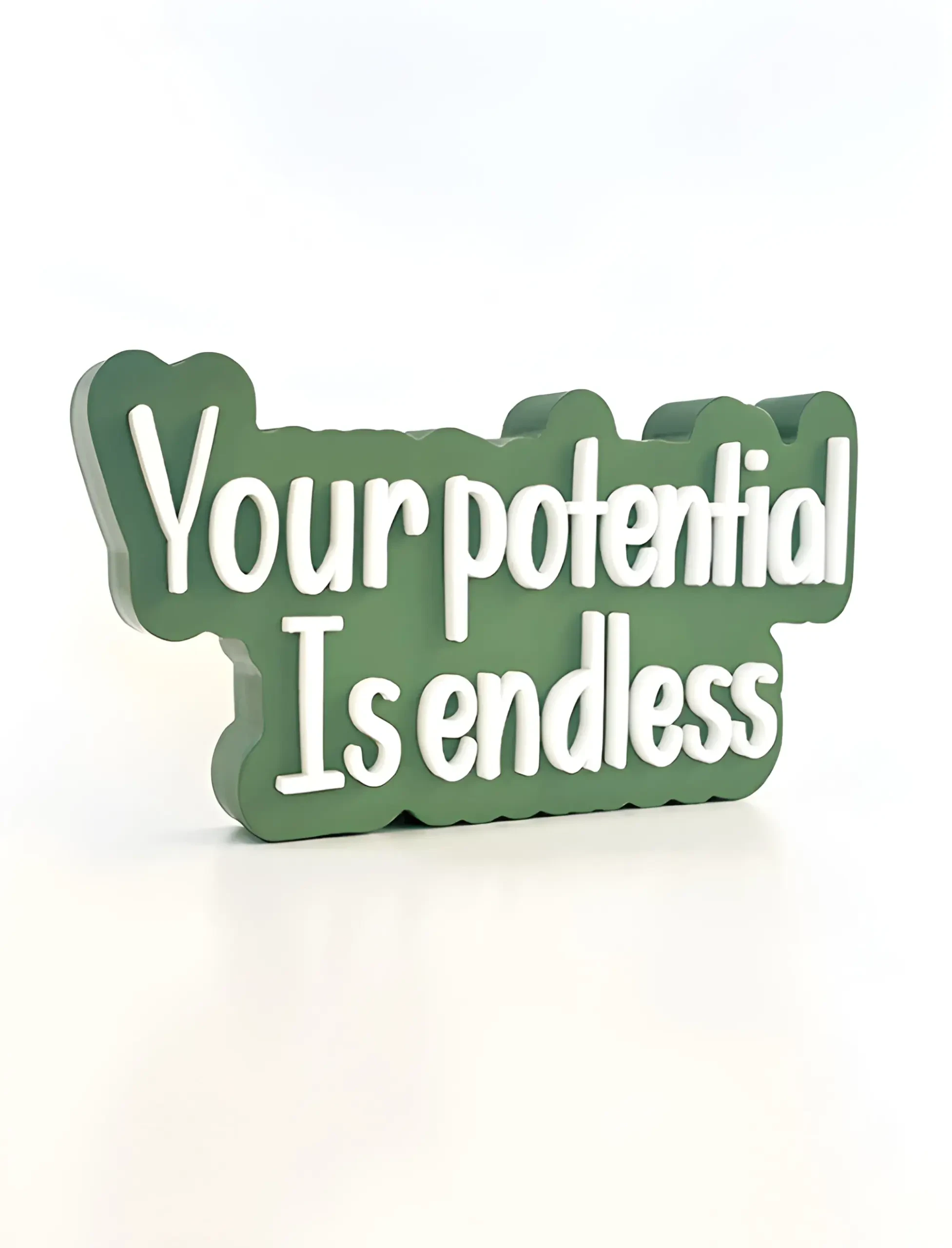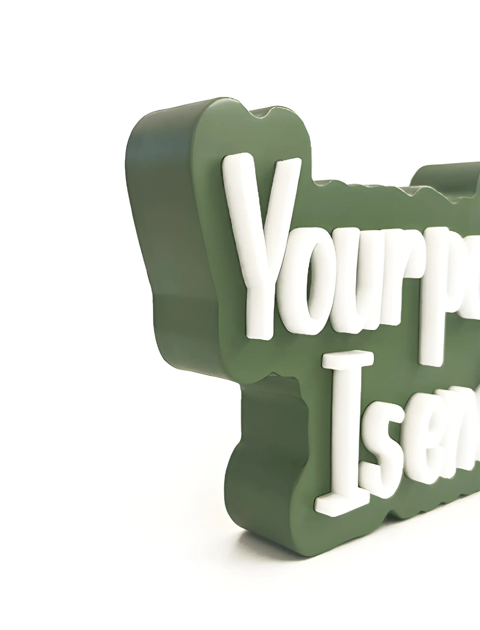Smooth matte surface with precise, layered lettering in premium acrylic.